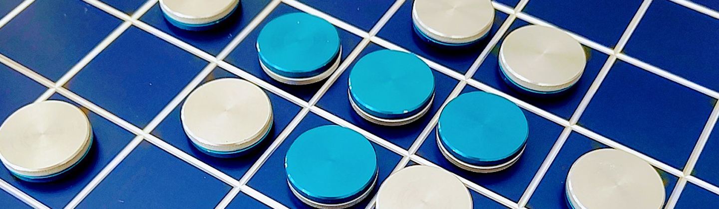 アルミ製のオセロゲームです。盤、駒共に東大阪の工場で切削制作しています。